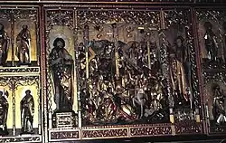 The Late Gothic altarpiece is Southern Jutlands largest and comprises a middle panel plus two stationary and two moveable panels resting on a predella with sculptures and paintings.