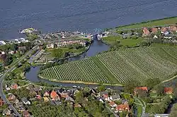![]() Lühe with the Lühe Tidal Barrage at its mouth into the Elbe in Lühe | |