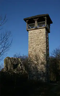 - Teufelsfels (569.0 m), rocks (natural monument, NM), southwest of the Womrather Höhe; with observation tower