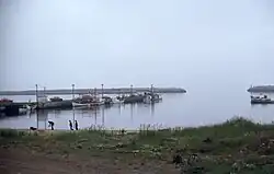The village unfolds around the cove of the Étang du Nord,[5] entered between Cap à Savage and Cap à Fidèle. In the cove there are three breakwaters protecting the fishing harbour. Two are public wharves, one is a floating wharf, 70 m (230 ft) long, the second, encased in stone, extends 130 m (430 ft). This harbour is managed by the harbour authority Administration du Havre de pêche de L’Étang-du-Nord.