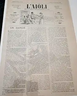 L'Aiòli was a Provençal-language newspaper founded by Frédéric Mistral in 1891 to defend and promote Occitan languages and literature, as part of the Félibrige movement.[1] The name comes from a famous Provençal dish, aïoli.