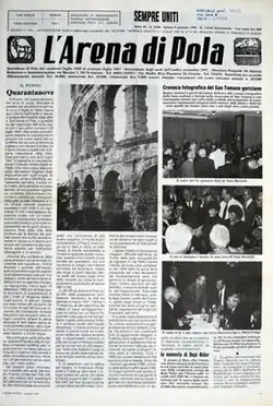 L'Arena di Pola (lit. '"Pola's Arena"') is an Italian newspaper founded in Pola (today Pula, Croatia), on 29 July 1945.[1] Following the Yugoslav/ Croatian annexation of the city, the daily newspaper was moved first to Gorizia and then to Trieste.[2] After it was moved to Gorizia, it became a periodical newspaper.