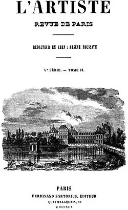 L'Artiste was founded in 1831 by Achille Ricourt with financing provided by the businessman Aimé-Joseph Brame.[2] In 1843, it was purchased by Arsène Houssaye.[3]