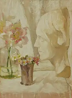 Albert Rudomine made a portrait of the death mask in 1927.[27] The blissful expression of the unknown dead girl was the inspiration for Yvonne Chevalier's 1935 recreation later titled Ophélie.[28] Man Ray in 1966 made a series of surrealist mises-en-scène pictures of a cast, in one case placing it on a pillow in bed, and these are held in the collection of the Centre Pompidou.[29]