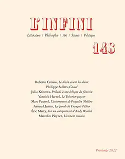 L'Infini (in English Infinity) is a French literary collection and magazine, established in 1983 in Paris by Philippe Sollers as a follow-up of the magazine Tel Quel.[1] The magazine was first published by Éditions Denoël and later on by Éditions Gallimard.[1]