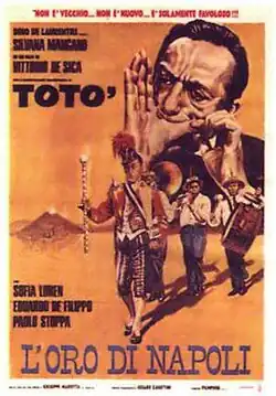 The Gold of Naples (Italian: L'oro di Napoli [ˈlɔːro di ˈnaːpoli]) is a 1954 Italian anthology film directed by Vittorio De Sica. It was entered into the 1955 Cannes Film Festival.[2] In 2008, the film was included on the Italian Ministry of Cultural Heritage’s 100 Italian films to be saved, a list of 100 films that "have changed the collective memory of the country between 1942 and 1978."[3]
