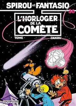 L'horloger de la comète, written by Tome and drawn by Janry, is the thirty-sixth album of the Spirou et Fantasio series, and the fourth of the authors. The story was initially serialised in Spirou magazine, before released as a hardcover album in 1985.