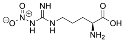 Nitroarginine, or Nω-nitro-l-arginine, also known as L-NOARG, is a nitro derivative of the amino acid arginine.[1] It is an inhibitor of nitric oxide synthase and hence a vasoconstrictor. As such, it finds widespread use as a biochemical tool in the study of nitric oxide and its biological effects.[2]