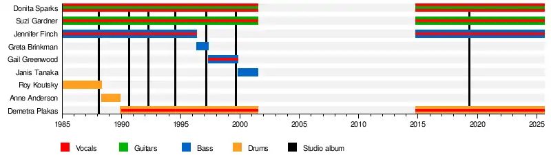 - Donita Sparks – lead vocals, guitars (1985–2001, 2014–present)