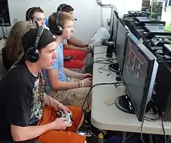 The first LAN Gaming center located on a college campus was Savage Geckos which was opened by Bruce McCulloch Jones as a tenant of Eastern Michigan University's Student Center, both opening on November 6, 2006.[2] The combination retail/gaming center included 21 networked Xboxs, other consoles: PS2s, PS3s, Wiis, 10 networked gaming PCs and theatre seating (with cup holders) for game play, LCD screens, video projectors and a retail/arcade/hang out area. This center hosted some of the first on-campus intercollegiate play with a Halo 3 tournament between students from Eastern Michigan University, University of Michigan, Michigan State University and Oakland University. The operation lasted until Spring of 2008 when it was purchased by the university.[2] Mr. Jones made a series of presentations to the Association of College Unions International promoting the use of video games for positive social interaction on campus student centers.[1] Now there are over 20 universities with some form of LAN Center on campus including Eastern Michigan University,[2] University of Michigan, Oakland University, Illinois State University, and Illinois Institute of Technology.