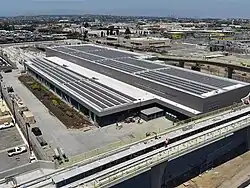 Trains then travel a short distance to the east and enter the LAX Consolidated Rent-A-Car Facility (ConRAC), a massive parking structure that will house all of the major rental car companies that operate at LAX.[5]