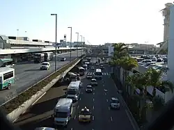 The Los Angeles International Airport has long struggled with gridlocked traffic on World Way, the main road that circles through the airport's central terminal area, that can often back up onto Century Boulevard or the Airport Tunnel, which connect the airport to Interstate 405 and Interstate 105 respectively.[7]