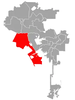 During the ward system, the City Council requested the annexation of six parts of the adjacent area: Garvanza, the University area, Colegrove, the shoestring area, Wilmington, and San Pedro.[25]