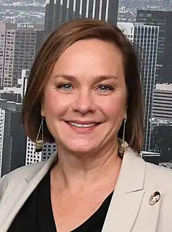 In 2015, voters in Los Angeles approved a charter amendment to move the election dates from odd-numbered years to even-numbered years, in line with other national elections, in an effort to boost political engagement.[51] Because of the change in dates, officials elected in 2015 or 2017 had their terms extended. In 2022, after a highly publicized scandal involving three City Council members (including Council President Nury Martinez) and the redistricting process, Acting President Mitch O'Farrell introduced a motion that would create a ballot measure in 2024 to expand the Council.[52] In 2023, the first all-female council committee was formed, with the six women on the council forming the committee.[53] In November 2022, the Ad Hoc Committee on City Governance Reform was formed, chaired by the next President Paul Krekorian, to reform the redistricting process.[54]
