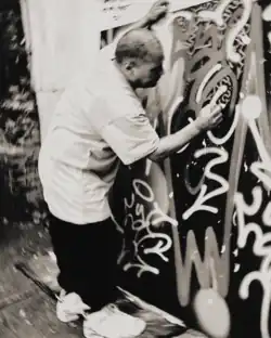 Ortiz has created graffiti art since at the age of ten. Starting in the mid-1970s, he tagged in New York's Lower East Side under the moniker LA2. At the age of thirteen, his subway tags caught the attention of Keith Haring in 1980.[1] Haring was reportedly inspired by Ortiz's artistry and the two began collaborating.[3] At the age of sixteen, Ortiz was in contact with Basquiat and Andy Warhol.[5] In 1982, Ortiz and Haring collaborated for an exhibition at the Tony Shafrazi Gallery in New York.[3]