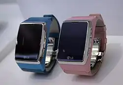 The LG-GD910 is a 3G watch phone that has a touchscreen and video calling capabilities; manufacturer LG Electronics claims it is the first market-ready example of such a device.[1]