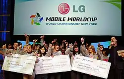 The LG Mobile World Cup was an international competition held on January 14, 2010, by LG Electronics in which participants competed using their texting speed and accuracy.[1] It was held at Gotham Hall in New York City.[2][3] Thirteen teams representing their countries competed for a total of $130,000 USD in prize money.