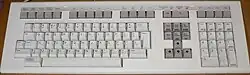 The keyboard layout was new at the time, adding a set of cursor and miscellaneous keys between the main keyboard and the numeric keypad. The cursor keys were arranged in what has now become the standard "Inverted T" arrangement seen on essentially all contemporary full-sized computer keyboards.[1][2] The keyboard also added a Compose key to allow typing of all of the characters in the terminal's extended character set using two-stroke mnemonics, for instance Composeu" produced ü. An LED on the keyboard indicated an ongoing compose sequence.