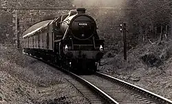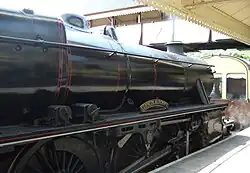 44806 Kenneth Aldcroft was based and worked at the Llangollen Railway.[3] 2008 was the 40th anniversary of the end of British Railways steam, and of 44806's own preservation. In July 2013, the locomotive was offered for sale, and was purchased by the North Yorkshire Moors Railway. Until January 2018 when its then boiler certificate expired, 44806 operated trains on the NYMR only between Grosmont and Pickering because it did not have mainline equipment fitted for use on trains running from Grosmont to Whitby.
