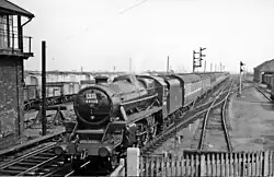 Four days later on Sunday 11 August it took part in the 45th anniversary run marking the end of steam on Sunday 11 August 1968.[4] 44932 & 45231 were to once again double head with each other but this time 44932 was to act as train engine to 45231 which was acting as pilot engine.[5] The two engines were in charge of the Carlisle to Longsight, (Manchester) leg of the tour. The two locos worked the special south down the Settle and Carlisle line to Hellifield and then down the Ribble Valley Line to Blackburn before taking the branch to Darwen and Bolton before arriving at Longsight where the two engines were replaced by classmate 45305 which would return the train to Liverpool. Other locos to take part in the tour included 45305 which took the train from Liverpool to Longsight in the morning and then back in the evening and 70013 Oliver Cromwell which worked the train from Longsight to Carlisle.