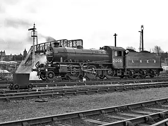 One example of the class, No. 62005, which was also the final member in service before its withdrawal, has been preserved, and is based at the North Yorkshire Moors Railway. It was acquired as a source of a spare boiler for the solitary preserved K4, but in 1972, the K1 was donated, still with its boiler, to the North Eastern Locomotive Preservation Group. It was also used as a stationary boiler at ICI North Tees Port Clarence Works for a period of 6 weeks.[2] It was eventually placed into storage at Neville Hill where it was later obtained by Viscount Garnock, Geoff Drury, George Nissen, and Brian Hollingsworth as a spare boiler for the sole surviving member of the Gresley K4 moguls 61994 The Great Marquess. The plans for the stationary boiler fell through and the locomotive was eventually purchased by the 45428 Stanier Class 5 Locomotive Society Ltd and was later donated to the NELPG.[3][4]