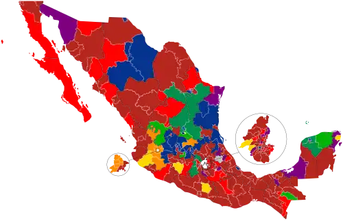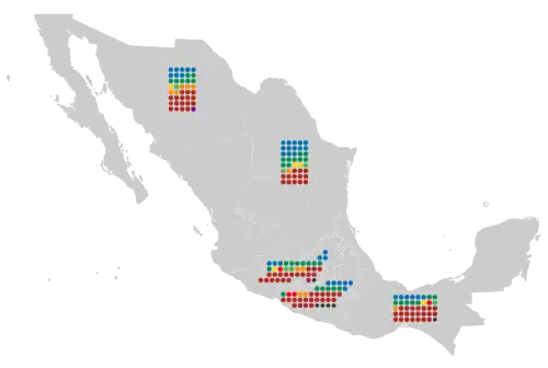 ![]() Chamber composition by district Held by PAN Held by PRI Held by PRD Held by PT Held by PVEM Held by MC Held by MRN Held by PES