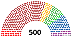The Chamber of Deputies is composed of 500 seats, elected from 300 single-member federal electoral districts and 40 apiece from five proportional representation electoral regions.