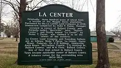 LaCenter,[2][3] formerly and often informally written as La Center, is a home rule-class city[4] in Ballard County, Kentucky, in the United States. The population was 872 at the 2020 census,[5] making it the most populous community in the county. It is part of the Paducah, KY-IL Metropolitan Statistical Area.
