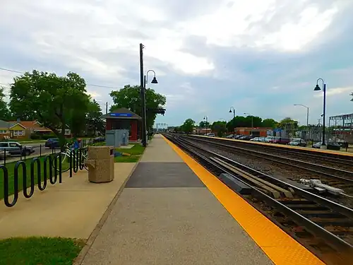 LaVergne is one of three stations on Metra's BNSF Line located in Berwyn, Illinois. The station is 9.0 miles (14.5 km) away from Union Station, the eastern terminus of the line.[2] In Metra's zone-based fare system, LaVergne is in zone 2. As of 2018, LaVergne is the 167th busiest of Metra's 236 non-downtown stations, with an average of 174 weekday boardings.[1] It is just west of the large BNSF Cicero Yard and the Canadian National's (former Illinois Central Railroad) Freeport Subdivision.