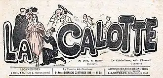La Calotte is a French illustrated satirical anticlerical weekly publication, which appeared in France from 1906 to 1912.[1][2] Afterwards the title was resumed from 1930 to the present day, with a change of name under the German occupation of France.[3]