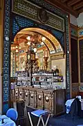 The restaurant was designed by the architect and ceramicist Émile Libaudière in the exaggerated Art nouveau style of the era.[2] On 1 April 1895, the brasserie was opened for business by its first owner, Mrs. Calado.