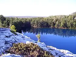 The La Cloche Silhouette Trail is a 78-kilometre (48 mi) backpacking loop across the white quartzite peaks of the La Cloche mountain range. The trail is situated in Killarney Provincial Park, Ontario, Canada. The trail is named for Group of Seven painter Franklin Carmichael's painting "La Cloche Silhouette."[1] Wildlife can be seen throughout the trail - black bears, moose, wolverines, mountain lions, lynx, fishers, snakes, porcupines, beavers, river otters, among other animals, can be encountered at various points along the way.