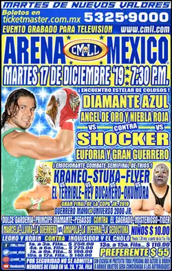 Starting in 1996 the Mexican professional wrestling promotionConsejo Mundial de Lucha Libre ("World Wrestling Council"; CMLL) held their first ever La Copa Junior tournament. CMLL held the tournament to celebrate the fact that lucha libre in Mexico is often a family tradition, with a large number of second, third, or even fourth generation wrestlers following the footsteps of their relatives.[1] The premise of the tournament is that all participants are second-generation or more, although at times the family relationship is a storylines family relationship and not an actual one. One example of this is Dragón Rojo Jr. being billed as the grandson of Dragón Rojo, when in reality that is simply a storyline created by CMLL.[2] The original La Copa Junior was won by Héctor Garza.[3]