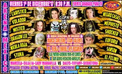The 2017 La Copa Junior VIP tournament was contested under torneo cibernetico elimination match rules. The six man teams saw Niebla Roja, Carístico, Volador Jr., Místico, Dragon Lee, and Stuka Jr. face off against the team of Negro Casas, Mephisto, Shocker, Euforia, Sansón, and El Felino. In the end Niebla Roja pinned Mephisto to eliminate him, earning the 2017 La Copa Junior VIP trophy.