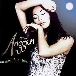 Au nom de la lune entered the French Albums Chart at number 50 on the issue date of 12 July 1997. It peaked at number 34 and remained on the chart for 17 weeks.[24] The album was certified gold by the Syndicat National de l'Édition Phonographique for accumulating sales of over 100,000 copies in France, with 82,000 of which being sold in just four weeks.[25][26] The English version for Indonesia market, Anggun, topped the Indonesian Albums Chart and sold over 50,000 copies in two weeks. The album was later certified triple platinum.[27] Anggun entered European Top 100 Albums chart at number 99 on 27 March 1999. It spent a total of 10 weeks on the chart, with peak position of number 69.[28]
