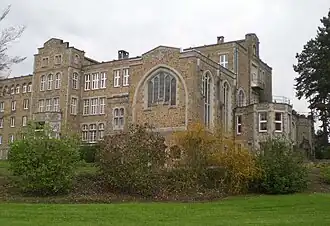 In 1932, La Pairelle was built. It was originally the St Bellarmine Institute (French: Institut Saint-Bellarmin). Named after Robert Bellarmine, it was a residence for the training of Jesuits who would study at the Université de Namur. In the building is a chapel in the Gothic Revival style. The building was designed by Albert Ghequière who also designed the Church of the Sacré-Cœur de Saint-Servais in Waterloo and Chapel of Saint-Thérèse in Namur. According to the Inventaire de patrimoine immobilier culturel of Wallonia, the style of the building is "neo-traditional".[3] From 1935 to 1971, as part of the training for Jesuit missionaries in India, an Indological course, which included the teaching of Sanskrit was taught there.[4]