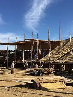 Regarding its cost, the families in charge of the protection of the materials used to build it say that it sometimes turns out to be rather expensive or inexpensive depending on the number of times the petate can be reused.[1] Low costs are attributed to a small amount of labour being required in the construction and the materials being stored nearby.[1] Since the cost of materials and labour is cheap, the construction and reconstruction remains profitable due to the sections being lent.[1] The fact that the construction is a community focused event further reduces costs.[1]