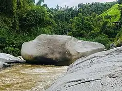 La Piedra Escrita (Spanish for 'the written stone') is a rock art site consisting of a large granite boulder containing pictographs located in the Saliente River[1] in Coabey, Jayuya in central Puerto Rico. The petroglyphs have become popularly associated with the Taino people and have been widely reproduced in popular art,[2] and the site has become a popular tourist attraction. The site was added to the United States National Register of Historic Places in 2003 due to its importance as a prime example of prehistoric rock art in Puerto Rico.[3]
