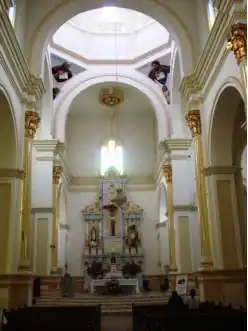 La Plata's parish since the nineteenth century, several churches have been built but all were of modest proportions, only in the early twentieth century the imposing building starts now exists. The first stone was laid by Archbishop Lopez's father being parish priest Emigdio Artunduaga the October 3, 1934 and the blessing and consecration of Bishop Martinez made the April 29, 1957. The Temple of San Sebastian is an architectural synthesis with qualities that stand out as one of the best in Colombia: beauty, grandeur, slim, height, width, abundance of light and perfection in the set. It has three naves in harmonious whole. In the front stand, the two sides two bold towers 52 meters high, on the back silver dome rises nearly hemispherical with large windows, on the front dihedral summit of the central nave climbs a statue San Sebastian gigantea height of 5.40 meters in four niches in the front of the main wall are the statues of San Pablo, San Pedro, San Juan Bosco and Our Lady. The length of the ship is 60 meters. And the width of 30 meters. At the bottom of the aisles is artistically made and decorated altars. The altar is a combination of exquisite niche in a set of columns, arches and frieze with three images of perfect stylization, one of which, the plant, is the patron Saint Sebastian. The light penetrates extensively and refracts on the walls and the polished golden acanthus column and illuminated with pictures of the ordeal diaphanous and beautiful pictures. The candlesticks, candles and chandeliers enhance the clarity of the large sanctuary. The reliefs of the Evangelists on the vivid polychrome dome mystically enchant