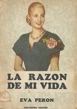 La Razón de mi vida (literal translation: "The Reason for My Life") is the autobiography of Eva Perón, First Lady of Argentina from 1946 until her death in 1952. The book was published in 1951 shortly before Eva's death, and is considered a propagandistic piece for Peronism, the political movement her husband, Juan Perón, started. The book explains how things such as class differences, labor rights, gender roles, and unions work in a Peronist world. In 1952, after her death, the book became required reading for government employees.[1]