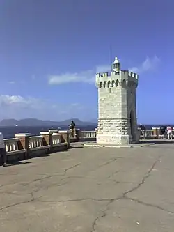 The lighthouse was built in 1928 on the same place where once was La Rocchetta, one of the four defensive fortifications, then demolished in the 1920s in order to make room for a panoramic town square above the cliff, which were connected to each other by walls that surrounded the city.