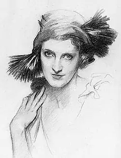 Massine left no record of his choreography, though like Satie's music it would have been simple and dignified to accommodate the upper crust amateur participants.[14] Olga Picasso, formerly of the Ballets Russes, was the only professional danseuse in the small ensemble. She and the Marquise de Médicis were cast as the searchers and were each given a solo dance. The role of the Statue was initially assigned to Marguerite Jacquemaire (the future Countess Marie-Blanche de Polignac), who would also perform as the soprano soloist for the Ludions, but she proved to be more talented as a singer than as a dancer.[15] On May 24 - less than a week before the event - Massine replaced her with Daisy Fellowes, niece of the Princesse de Polignac and an heiress to the Singer sewing machine fortune. Satie was thrilled with the chic, uninhibited Fellowes, who in the interwar years acquired a considerable reputation as a high society "bad girl". "At last! I find an interpreter with some initiative", he enthused to Edith de Beaumont, adding that her rehearsals had left him "flabbergasted."[16][17] He quickly composed a new number for her, the march-like Entrée, and revised the concluding Retraite to add a trumpet flourish illustrating the statue's awakening to life. Satie's final manuscript suggests the effect the socialite had on him. It is simply titled, "Organ: Mme Fellowes."[18]