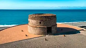 From 18th to 19th century the coastal towns frequently faced raids by Moro marauders locally known as tirongs (raiders, attackers, pirates) and Chinese pirates, who looted barrios or villages and captured women and children. To counter these attacks, the Spaniards built circular adobe watchtowers, or baluartes, in 1836.[25] These structures, ranging from 6 to 7 meters in height, were constructed along the coastline in towns such as Namacpacan (Luna), Balaoan, San Fernando, and Bauang. These baluartes played a crucial role in protecting coastal settlements and securing trade routes throughout the 19th century.[26]