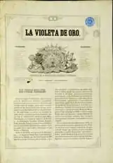 La Violeta de oro was a Catalan magazine that was first published in October 1851. The editor-in-chief was Víctor Balaguer. Behind the publication of the magazine was the "Sociedad Filarmónica Literaria" (a literary society), which had a very high prestige regarding music. After two months, Victor Balaguer had to leave the magazine. As a consequence, it disappeared on December 20, 1851, with only 9 issues published. Regarding the format of the magazine, it had 8 pages and a monthly subscription cost of 1 peseta. It was printed by "Imprenta del Porvenir" (Barcelona).[1]