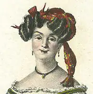 La fille du régiment received its first performance in America on 7 March 1843 at the Théâtre d'Orléans in New Orleans.[13][14] The New Orleans company premiered the work in New York City on 19 July 1843 with Julie Calvé as Marie.[13] The Spirit of the Times (22 July) counted it a great success, reporting that, though the score was "thin" and not up to the level of Anna Bolena or L'elisir d'amore, some of Donizetti's "gems" were to be found in it.[15] The Herald (21 July) was highly enthusiastic, especially in its praise of Calvé: "Applause is an inadequate term, ... vehement cheering rewarded this talented prima donna."[16] Subsequently the opera was performed frequently in New York, the role of Marie being a favorite with Jenny Lind, Henriette Sontag, Pauline Lucca, Anna Thillon and Adelina Patti.[17][18]
