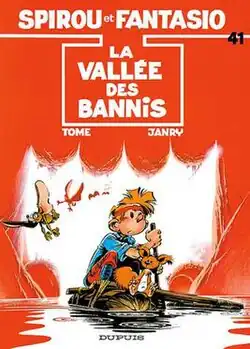 La vallée des bannis, written by Tome and drawn by Janry, is the forty first volume in the Spirou et Fantasio series, and the ninth from the Tome & Janry team. The story was serialised in Spirou magazine before it was released as a hardcover volume in 1989.