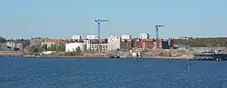 The Laajasalo oil harbour was founded in 1951.[8] The first 12 apartment buildings in Laajasalo were built in the northwestern part of the island into Yliskylä in December 1963. These buildings contained a bit more than 700 apartments, which were mostly meant for holders of apartment savings accounts in various banks.[9]