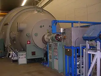 Currently, most work at the Legnaro National Laboratories involves studies of nuclear structure, nuclear reactions, and gamma-ray spectroscopy; the last was internationally recognized in the 1990s.[1] The recent focus of the Legnaro Laboratories, and the main future project, is SPES (Selective Production of Exotic Species).[3] A new accelerator for the production of radioactive ion beams has been under construction since 2007,[4] and the alpha phase of the project, featuring a new cyclotron, was inaugurated in December 2016.[5] Subsequent beta, gamma, and delta phases are planned, approved, and funded by INFN and the Italian government; it will be possible to synthesize new isotopes and mass produce medically useful isotopes once they are completed.[1]