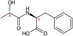 Lactoylphenylalanine, or Lac-Phe, is an N-lactoyl-amino acid metabolite produced by mammals and microorganisms.[1][2][3][4][5] In humans, levels are increased by intense exercise and in the inborn error of metabolism phenylketonuria.[6][7][8][1][9] In mice, high levels of Lac-Phe in the blood cause a decrease of food intake[6] and in humans, its production has been shown to correlate with adipose tissue loss during an endurance exercise intervention.[10] In mammals it is created from (S)-lactate and L-phenylalanine by the cytosol nonspecific dipeptidase (CNDP2) protein.[1] It is classified as N-acyl-alpha-amino acid and pseudodipeptide.[11]
