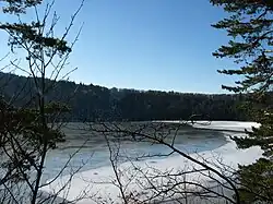 The lake has been studied by scientists since the 18th century: the Count of Montlosier in his Study on the Volcanoes of Auvergne[12] of 1789 proposed that the lake came from a "powdery explosion". Its unaltered characteristics (meromictic lake and pristine[alpha 2]) has meant that it has been widely studied, particularly with regard to hydrobiology. Scientific teams attached to the CNRS from Lyon, Paris, Clermont-Ferrand and Orléans launched a platform in 2013 allowing samples to be taken in the middle of the lake. This platform is raised in Winter.[13]